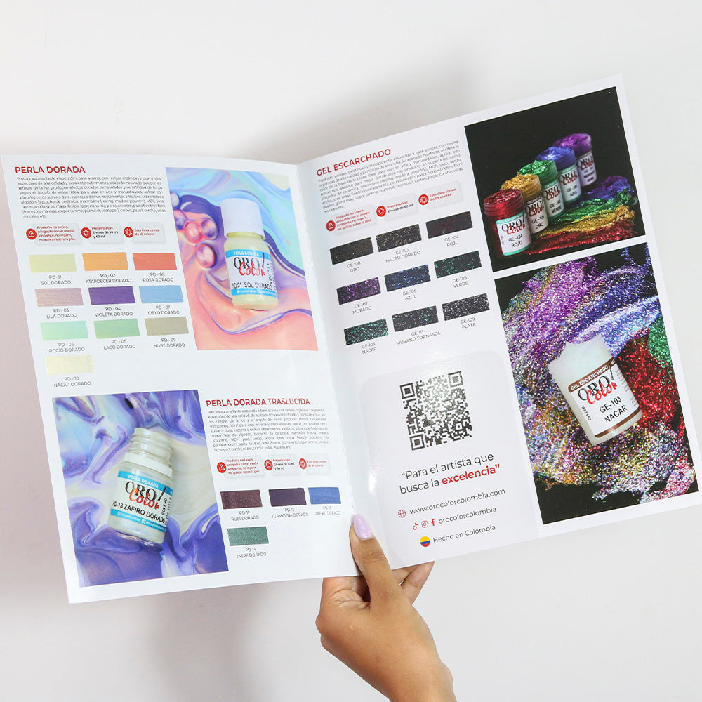 Descubre nuestraCarta de Colores física de Perla Dorada, Envejecedores y Geles, cuidadosamente elaborada y pintada a mano para ofrecer una representación 100% real del acabado final de nuestras pinturas.