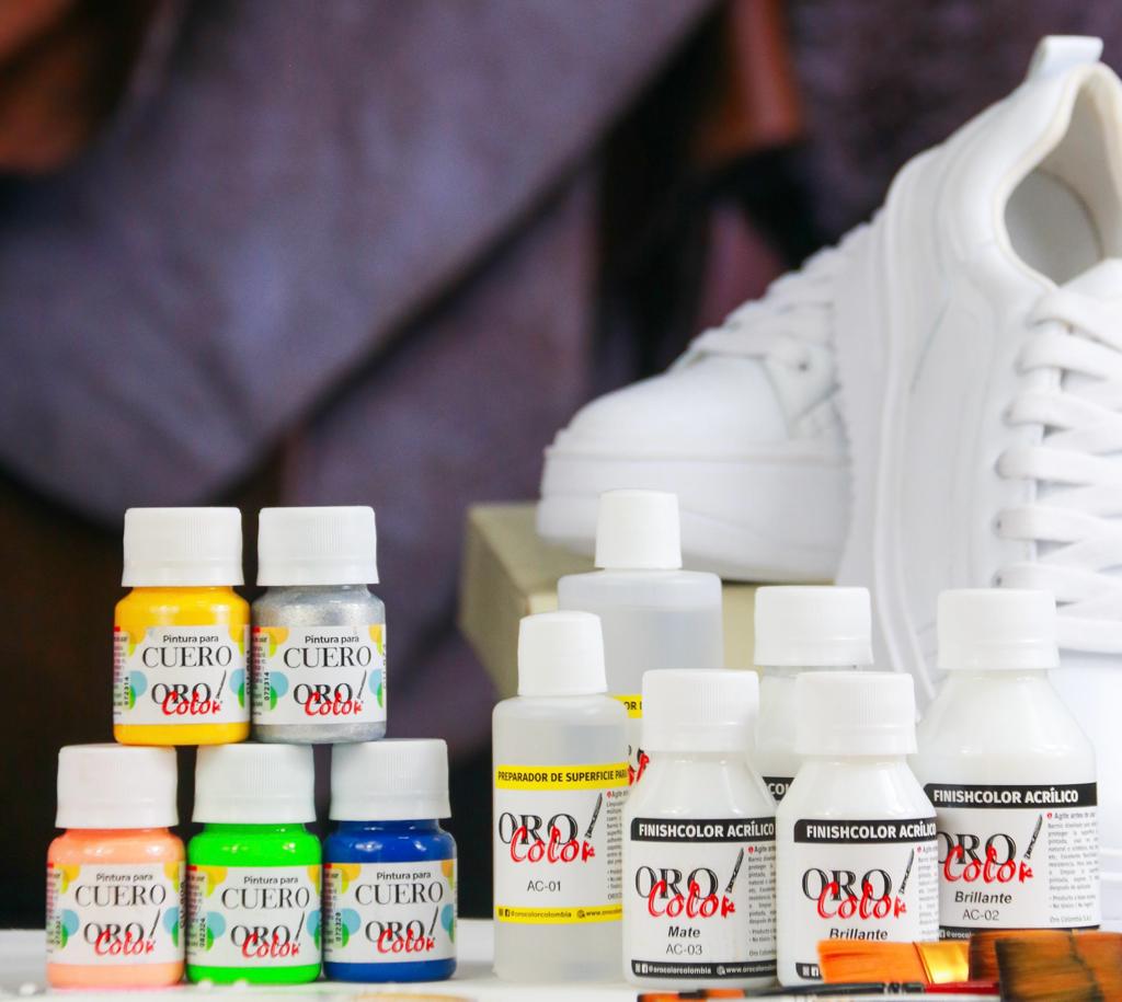 45 colores planos de nuestra linea de pintura para cuero en 30ml, 10 colores neones 30ml, 6 colores perlados 30ml, 5 colores metálicos 30ml, 1 preparador de superficie 60ml, 1 finishcolor brillante 60ml y 1 finishcolor mate 60ml